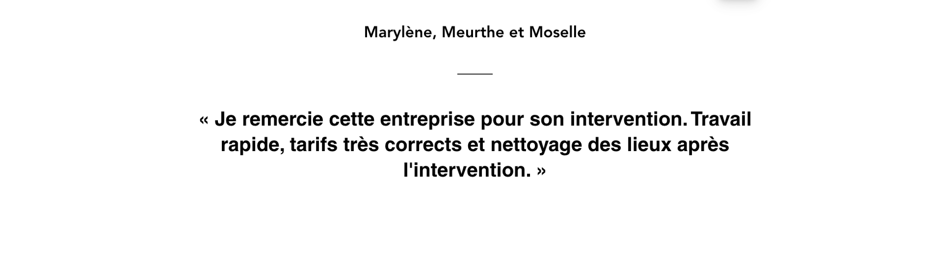 « Je remercie cette entreprise pour son intervention. Travail rapide, tarifs très corrects et nettoyage des lieux après l'intervention »