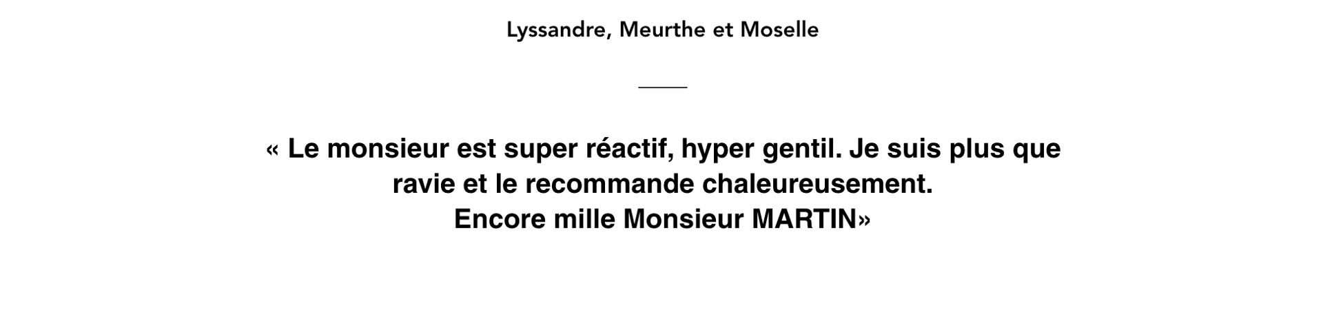 « Le monsieur est super réactif, hyper gentil. Je suis plus que ravie et le recommande chaleureusement.